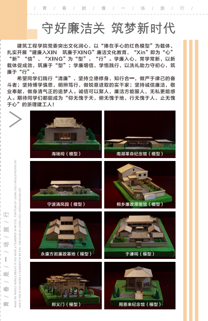 学院为毕业生发放了精心设计的“廉洁手册”,以“捧在手心的红色模型”为载体,印制了同学们自己手作完成的廉政建筑模型,希望同学们能够坚持立德修身,知行合一,做严于律己的奋斗者;坚持诚信廉洁,敬业奉献,做身清气正的追梦人。