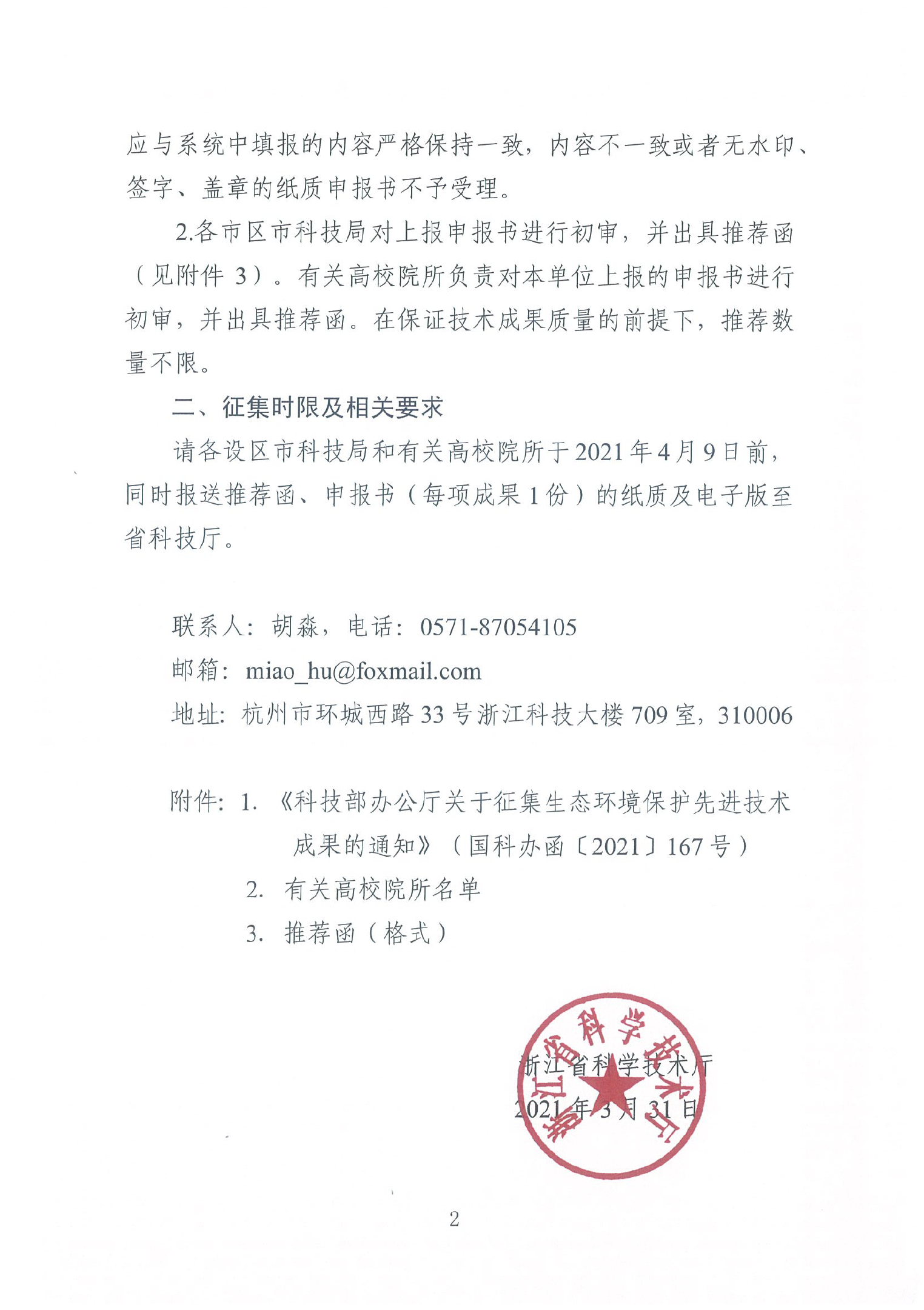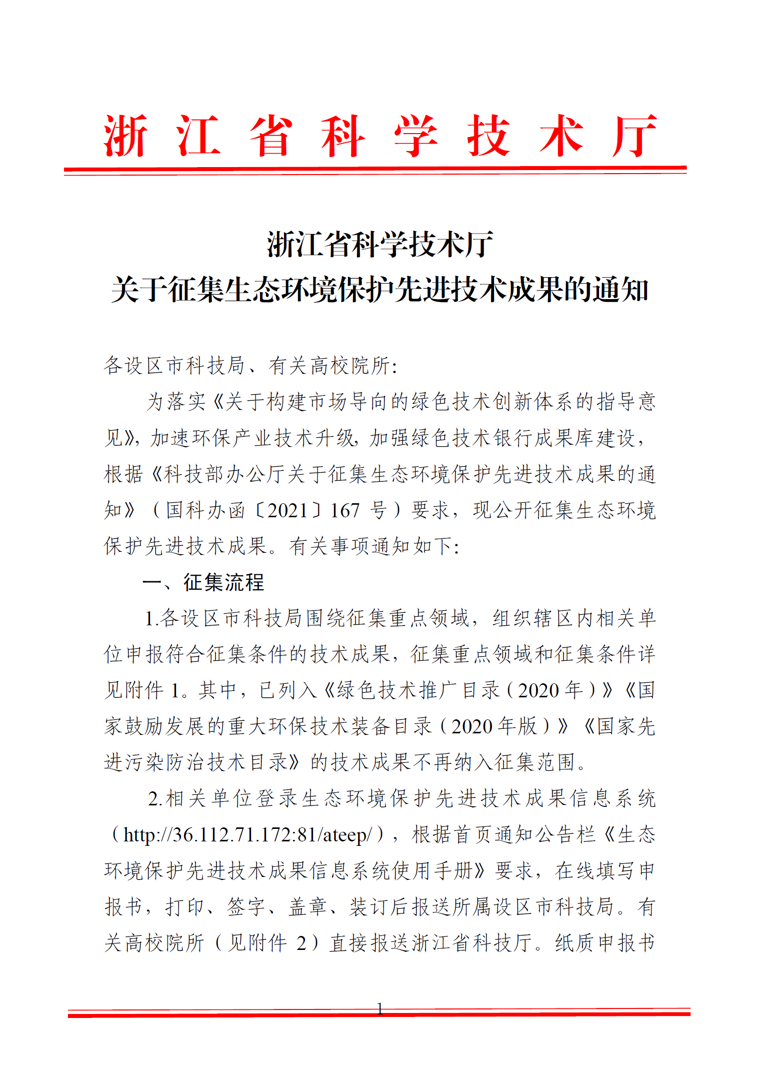 请负责人于4月8日前按照通知要求上报科技处,谢谢!科研院联系人:朱恩泽,86843648,[email protected]; 周艺艺,86843695,[email protected]科技部办公厅关于征集生态环境保护先进技术成果的通知征集重点领域生态环境保护先进技术成果申报书(格式)