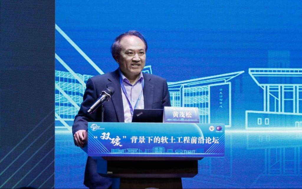 随后,中国土木工程学会土力学及岩土工程分会副理事长、专委会主任黄茂松教授致辞。他认为,在当前的国际国内形势下,推进绿色低碳发展已成为社会共同关注的重要议题,软土工程作为工程建设中的重要领域,也需要紧跟时代步伐,为实现“双碳”目标贡献力量。
