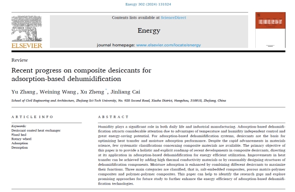 郑旭教师团队在Energy上发表了题为“Recent progress on composite desiccants for adsorption-based dehumidification”的综述论文,报道了近年来固体除湿领域复合干燥剂的研究进展。蘑菇视频