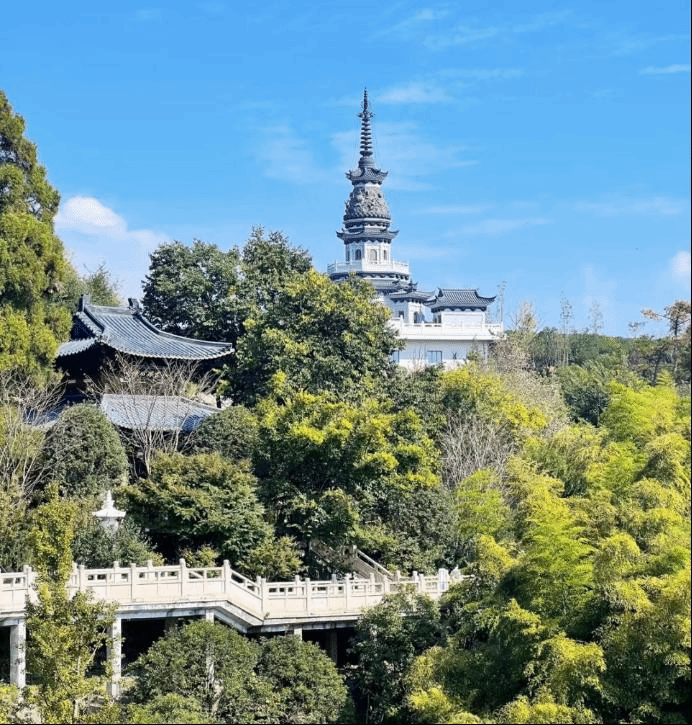 早上一路欢声笑语一行到达径山。登高途中,景色迤逦,茂林修竹,溪水潺潺,山路十八弯。弯道尽头是千年古刹径山寺。径山寺建筑是国内少见的宋代风格,被郁郁葱葱的茶园包围,是“茶道”文化起源地,在中外享有盛名。一行老师居高望远,一览秋日的山林美景。