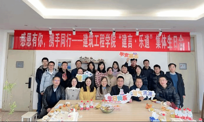 为增强学院教师的向心力和归属感,让老师们切实感受到建工“家”的温暖36日下午建筑工程学院分工会精心组织了一场仪式感满满的集体生日会,为第一季度生日老师们庆祝生日。