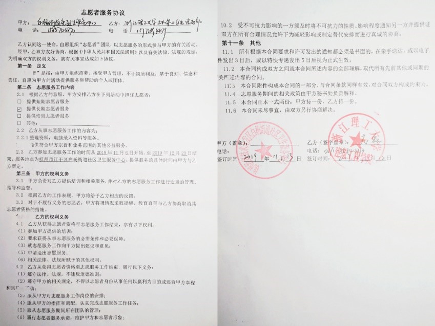 第一期·遇见白杨 11月6日,志愿者们以党员的身份、学生的态度,加入到医者的工作当中来。土木第二学生党支部副书记胡启新与白杨卫生服务中心洪彬彬女士在当天下午签订了合作协议。
