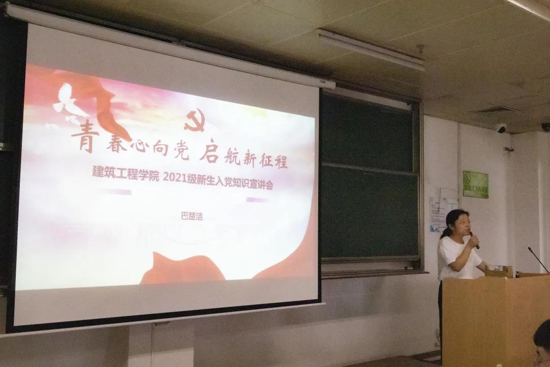 党建委指导老师巴楚洁向新生们介绍了入党流程,使新生们基本了解了发展党员的程序和要求。她指出,新时代大学生要努力学习科学文化知识,提高理论水平,端正入党动机,坚定理想信念,积极向党组织靠拢。