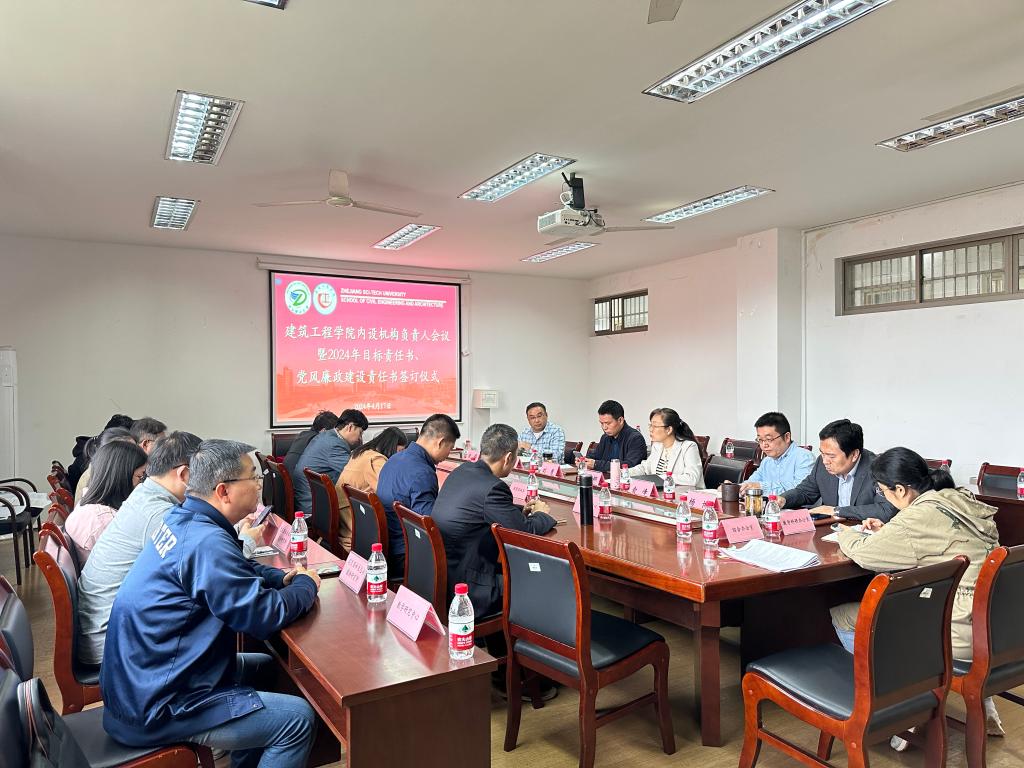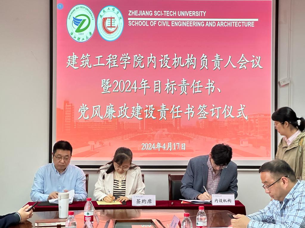 李娜执行院长俞峰代表学内设机构负责人签订了2024年目标责任书和党风廉政建设责任书。