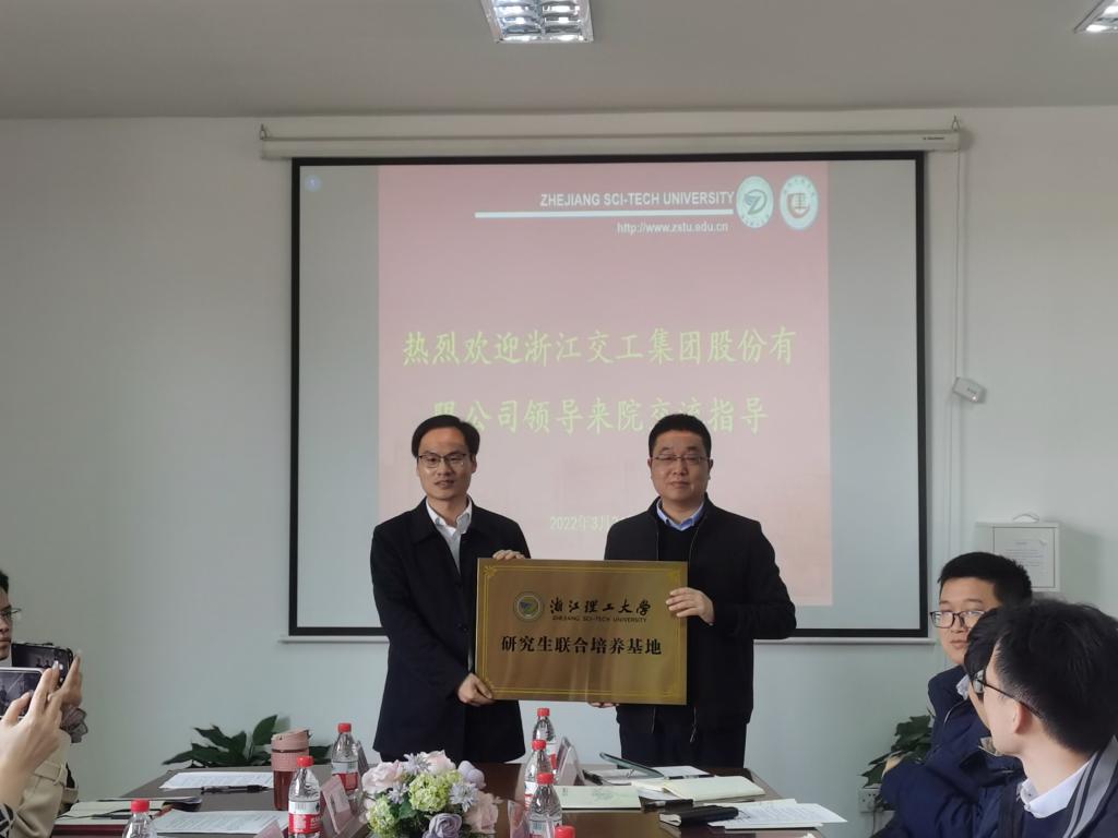 俞峰代表学院对疫情之下交工集团的专程到访表示热烈欢迎,并简要介绍了学院发展概况、专业设置等。集团人力资源部副总经理赵巧英和交工路桥建设有限公司傅利军介绍集团新进人才培养、员工职业规划、职称晋升,以及公司薪酬待遇、员工福利等方面情况。前期,双方已达成研究生联合培养战略合作协议,会上,俞峰代表学院授予集团研究生联合培养基地铜牌。校企双方在已签订协议基础上深入商讨博士后流动站、研究生双导师制、本科生专业实践、双方技术合作、人才输送等具体合作内容。会议双方表明了继续深入合作的意愿,希望能够拓宽合作业务范围,持续保持沟通交流。