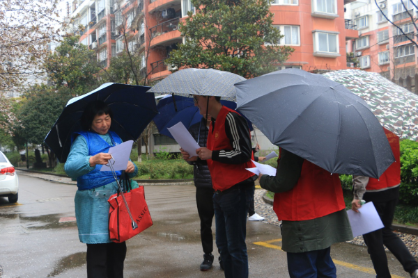 好雨知时节,下午的细雨也是非常应景的,在社区的活动中心,同学们张贴宣传海报,悬挂横幅,吸引了一批社区居民的关注,同学们向小区居民普及劣Ⅴ类水的危害及一些节水小知识,还介绍了政府的节水政策,鼓励市民积极配合政府五水共治工作。摆在旁边的照片墙也让不少人留意,那些龟裂的土地触目惊心。社区的路旁,有不少同学冒着雨向路人分发节水贴士。随后是有趣的有奖知识问答环节,现场的居民们都积极踊跃的参与,气氛十分热烈,答题赢得一片喝彩。最后,大家一起在横幅上签名,并进行合影留念,。