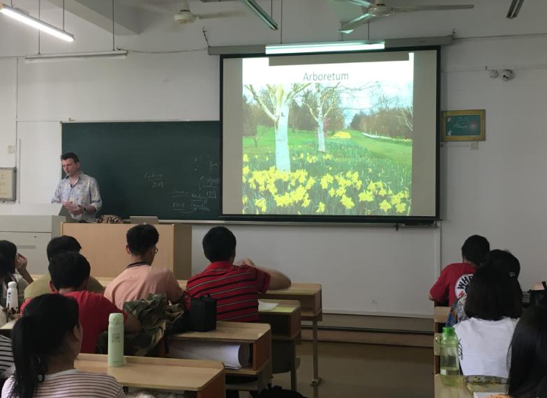 2018年5月3日下午,英国皇家园艺学会(Royal Horticultural Society,简称RHS)首席植物学家James Armitage 应邀来访我校并做专题讲座。参加本次讲座的有蘑菇视频