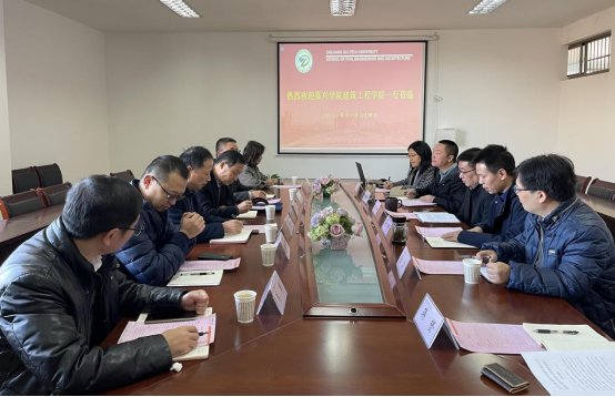 党委书记姚民乐、院长王恩茂、党委副书记杨智慧、副院长黄殿武、陈华及办公室主任肖伟一行6人来学院进行访问,双方就专业设置、学科建设、学位点申报、研究生培养等问题开展了深入交流。交流座谈会由副院长刘勇主持,执行院长俞峰、党委副书记李孝明、建筑系系主任洪艳、工程管理系系主任徐森和学院教科办主任蒋赟参加了座谈会。