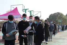 篮球场排队等候的考研学生惊喜地告诉记者,学校为了考研的同学服务到位,排队等候期间还收到建筑工学院党委副书记李孝明和辅导员递上的考试用品。