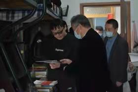院长杨杨、执行院长俞峰、党委副书记李孝明、副院长杨博、刘勇以及辅导员们一同走访学生宿舍,深入了解学生思想动态,为学生们送上了学院最殷切的关怀,表达了最温暖的问候。老师们一行深入学生寝室,细致地询问同学们的备考状态和生活近况,叮嘱大家做好个人防护。他们与学生亲切交谈,强调了当前疫情的严峻性以及积极防疫的重要性,为学生送上口罩、消毒液等防疫物资。同时也叮嘱考研学子要劳逸结合,调整状态,科学备考,充分利用最后的时间,引导同学们以积极平和的心态应对考试,祝福同学们取得优异的成绩。