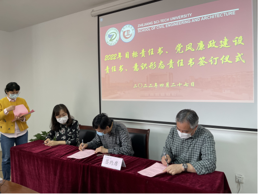 随后,学院党委书记李娜、院长杨杨代表学院与各内设机构负责人、党支部书记分别签署了年度目标责任书、党风廉政建设责任书和意识形态工作责任书。