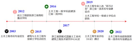 土木工程专业于2003年开始招生,2011年开始招收留学生,现设有建筑工程和地下工程两个专业方向。现有专任教师37人,其中教授8人,副教授16人,具有博士学位34人。2019年,土木工程专业入选“双万计划”浙江省一流本科专业建设点;2020年,通过工程教育专业认证(有效期6年)。现有土木工程本科和土木工程学硕及土木水利专硕两个层次人才培养体系。
