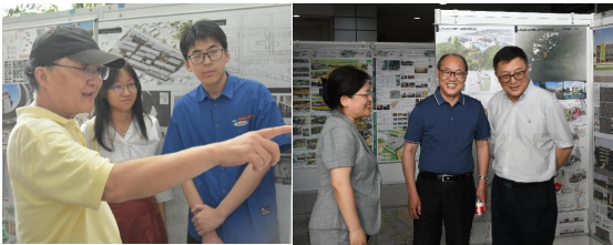 开幕式后,三位专家现场观摩了毕业设计作品展板和建筑模型,并对设计作品进行了点评。同学们的设计基本功得到了专家们的肯定,特别是过程分析、设计表达方面较为出色;同时,专家们也指出了一些不足之处,如展板的总体布局和视觉效果,强调应重视各类图纸的准确性、制图规范、技术经济指标等。对于细节问题,专家们也都耐心地向学生一一指出,并与在场师生展开了积极热烈的讨论。
