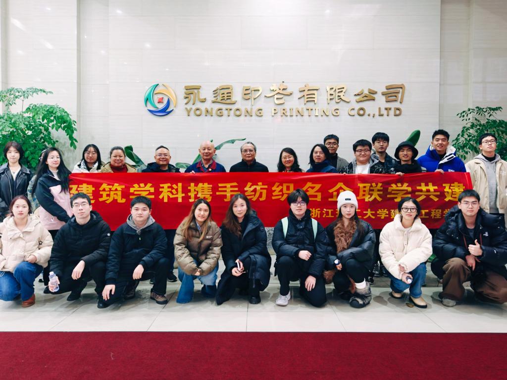 党委委员兼建筑学教工党支部副书记周红燕、副系主任文强、副教授陈潇玮携建筑学与风景园林方向17位硕士生奔赴位于“国际纺织之都”的柯桥,与绍兴永通印花有限公司执行董事兼总经理章建木、党总支书记兼副总经理冯晨、副总经理毛学泽进行了深入交流。