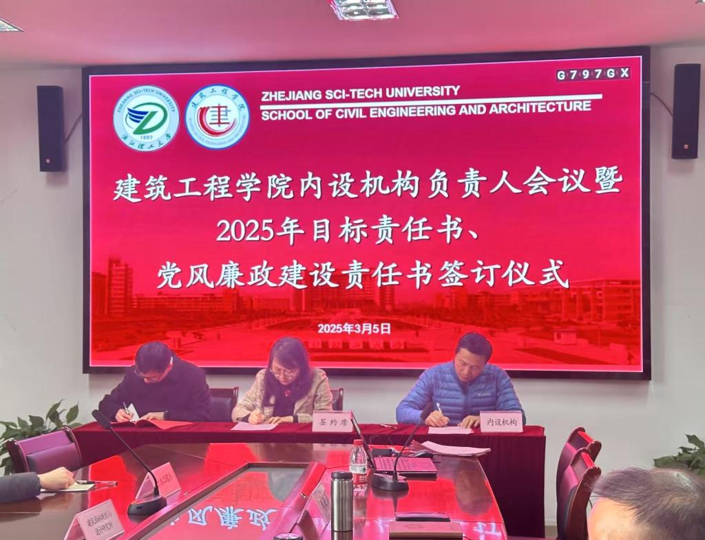 李娜、学术院长顾晓强代表学院与内设机构负责人签订了2025年目标责任书和党风廉政建设责任书。