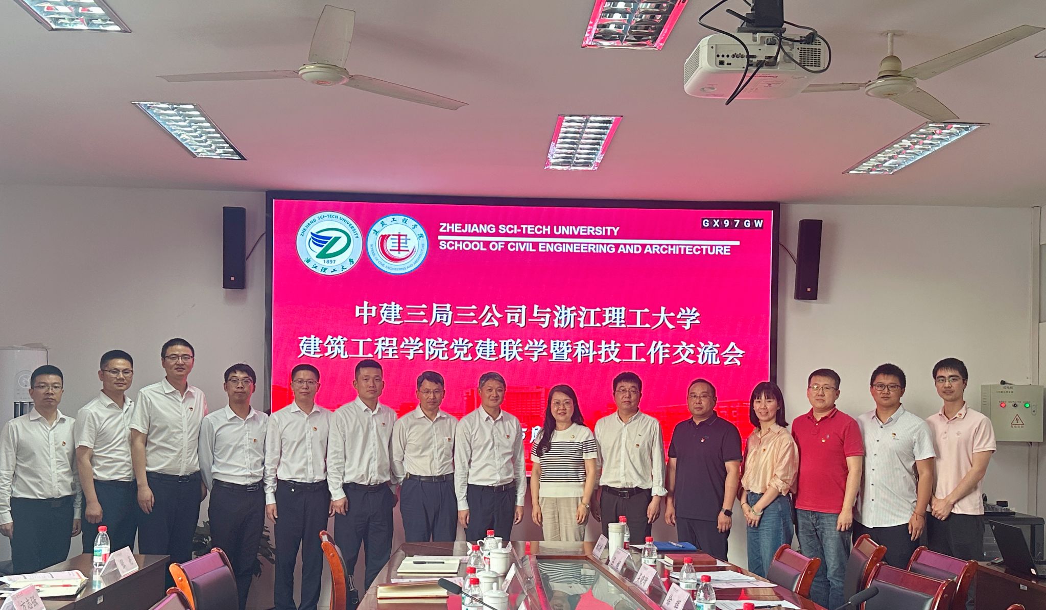 与中建三局三公司在学院7-504室开展党建联学暨科技工作交流活动。中建三局三公司总工程师赖国梁,副总工程师段军朝,设计院党支部书记、院长史阳,设计与技术管理部经理廖继等一行九人到访,学院党委书记李娜,校科技处处长、执行院长俞峰,副院长徐辉,副书记朱何璇及教师代表参加会议。
