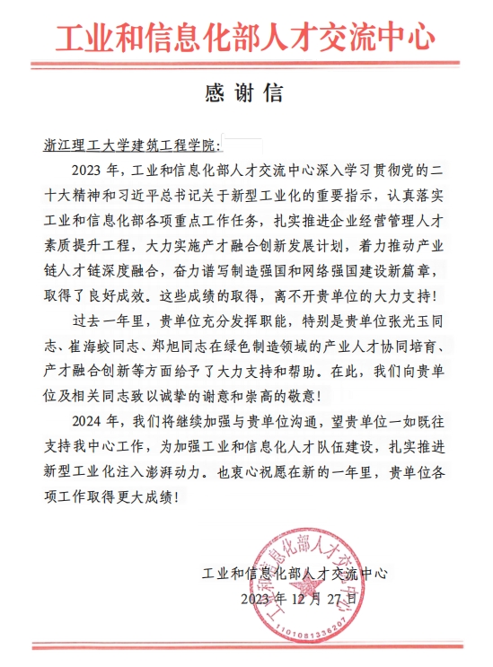 近日,工业和信息化部人才交流中心发来感谢信,对蘑菇视频