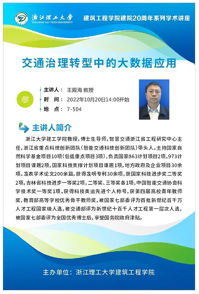 建院20周年系列学术讲座之三:交通治理转型中的大数据应用